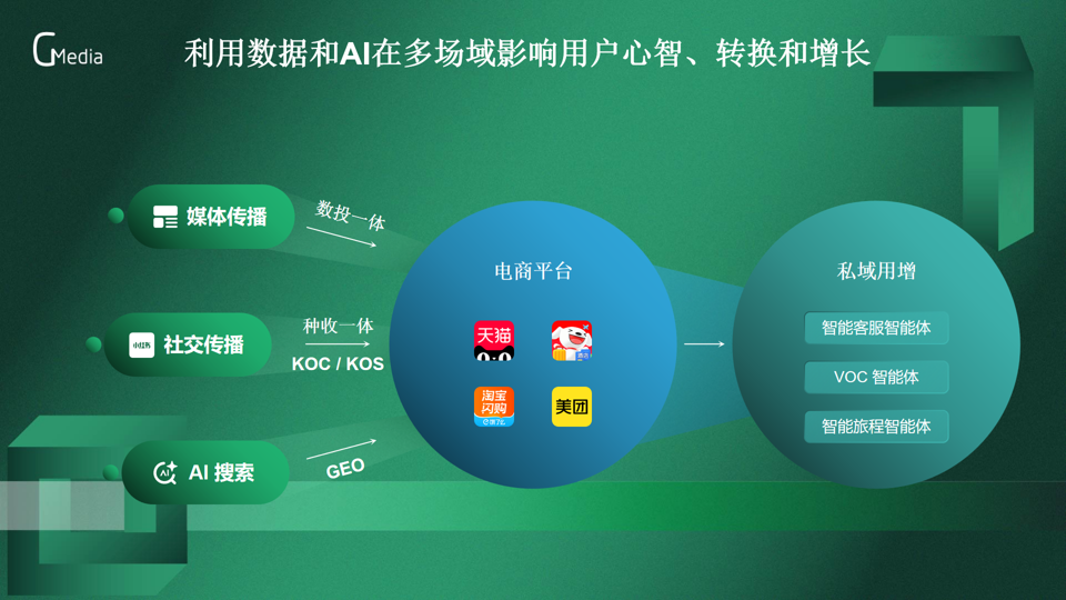 在私域运营环节,谢鹏先生强调智能体的核心赋能价值。针对企业员工、导购等KOS群体内容创作难的问题,哈希游戏智能的KOS智能体可生成千人千面的个性化内容,同时抓取有效客群互动数据,实现免费流量的高效激活。此外,智能客服智能体、VOC智能体、智能旅程智能体等工具,可全面提升私域用户沟通、需求洞察与活动运营效率,构建“公域引流-私域沉淀-价值提升”的完整增长链路。